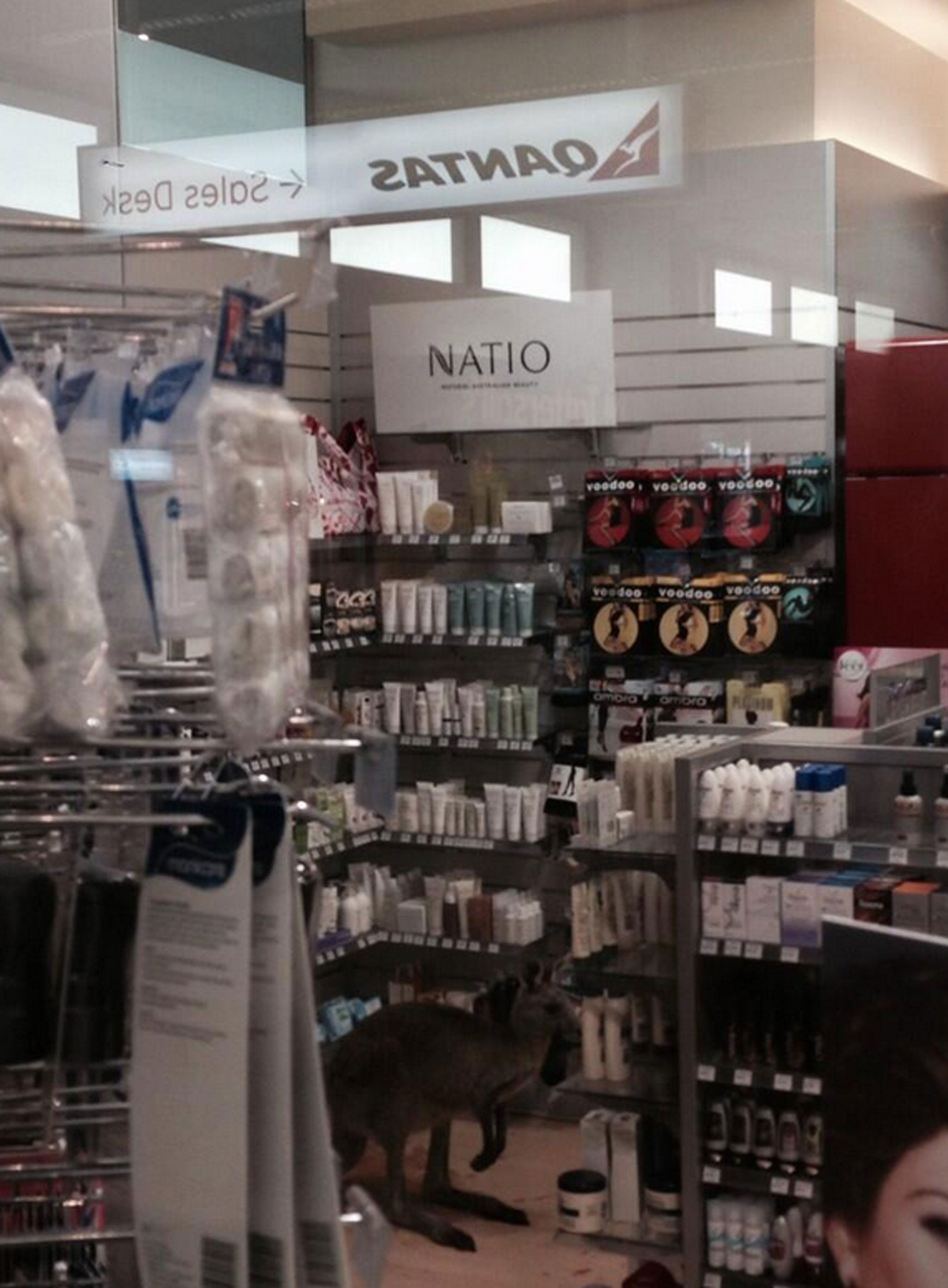 Australian comedian Julia Morris tweeted “Ok, so I'm at Melbourne airport & a KANGAROO has just jumped into the chemist.”