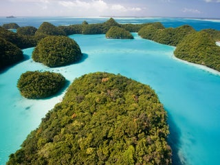 A view of the Palau's Rock Islands as the tiny Pacific island nation of Palau, created one of the world's largest marine sanctuaries, saying it wanted to restore the ocean for future generations. At 500,000 square kilometers (193,000 square miles), the sanctuary is the same size as Spain and covers an underwater wonderland containing 1,300 species of fish and 700 types of coral