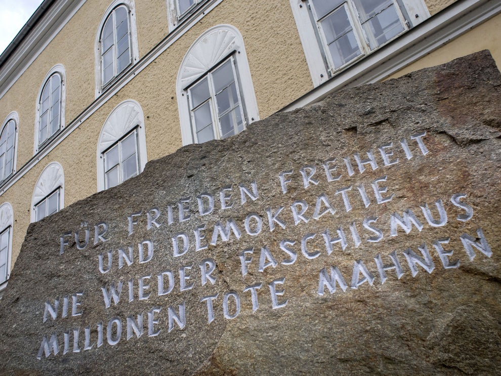 The building, in the town of Braunau am Inn, is unmarked except for a memorial stone, which reads: “For peace, freedom and democracy. Never again fascism – the millions of dead remind us.”