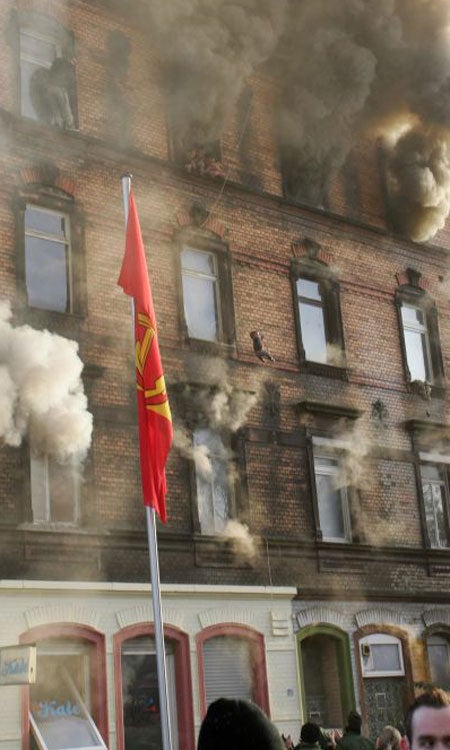 The incident occurred after the century-old block was used by revellers looking on at a carnival popular in Catholic areas of Germany which passed by in the street below. The heat of the fire was said to be so intense that a stairwell within the building collapsed. "It was just a pile of ashes," the local fire brigade chief, Peter Friedrich, said. "People were escaping through windows before we arrived at the scene."