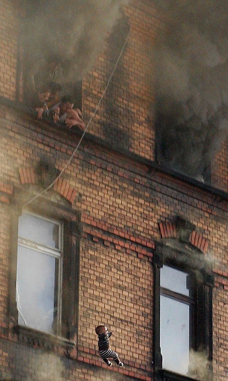 But nine people including five children and a pregnant women were killed when a blaze scorched a block of flats in the southern German city of Ludwigshafen. It was not known last night whether the baby's parents were among the dead.