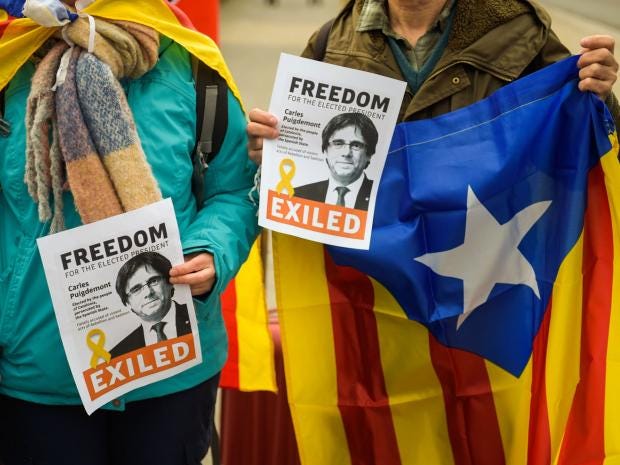 The country’s authorities accuse Mr Puigdemont, 55, of rebellion and misuse of public funds for organising an unauthorised referendum last year on independence for Catalonia.