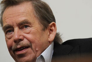 Vaclav Havel is small, frail and as usual he’s wearing a badly-fitting suit and an open white shirt. You feel he would be smoking, but he isn’t allowed to now.