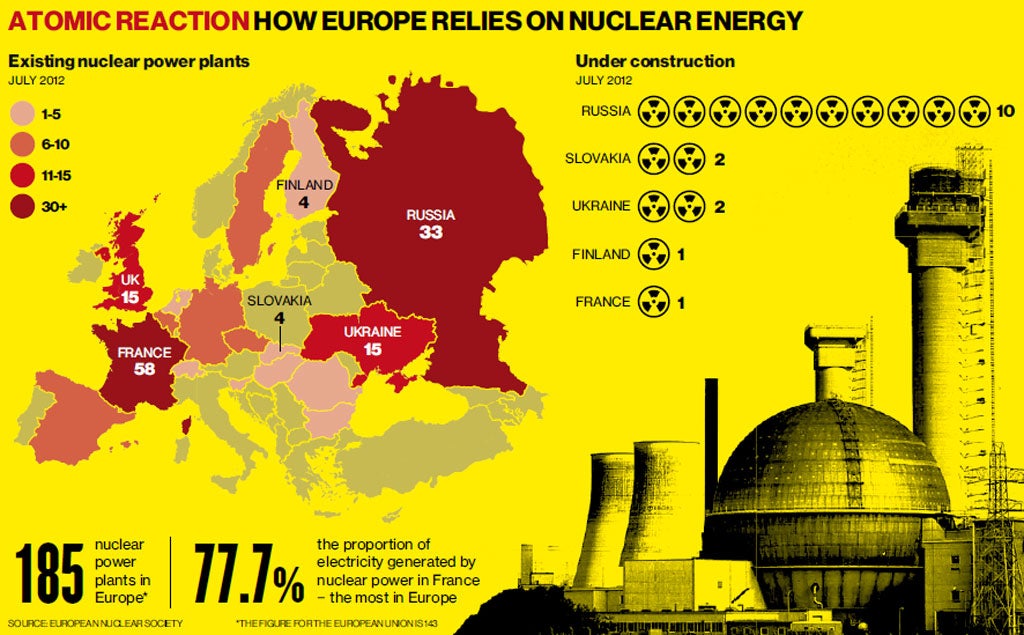 It also pointed out that 47 of the EU's plants contained a total of 111 reactors which were surrounded by more than 100,000 inhabitants living within 30km.