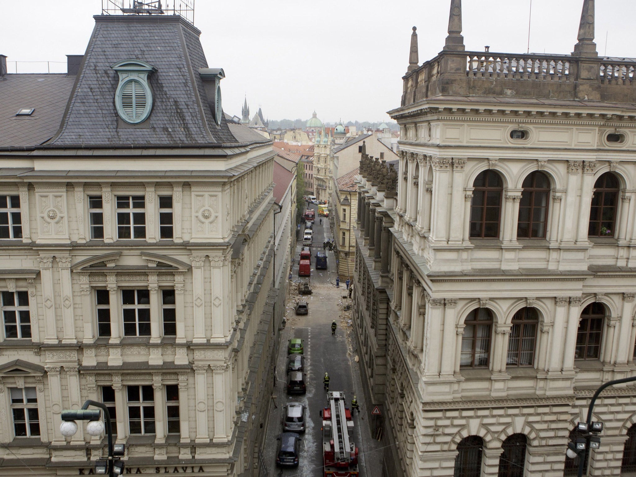 The blast blew out windows in neighbouring buildings, including Prague's landmark Cafe Slavia.