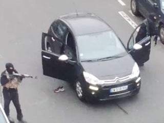Footage of the attack shows the Kouachi brothers, who later took one person hostage at a printing plant in Dammartin-en-Goele, shooting dead Muslim police officer Ahmed Merabet, 42, before allegedly shouting “we have avenged the Prophet Mohamed” and jumping into a stolen car.