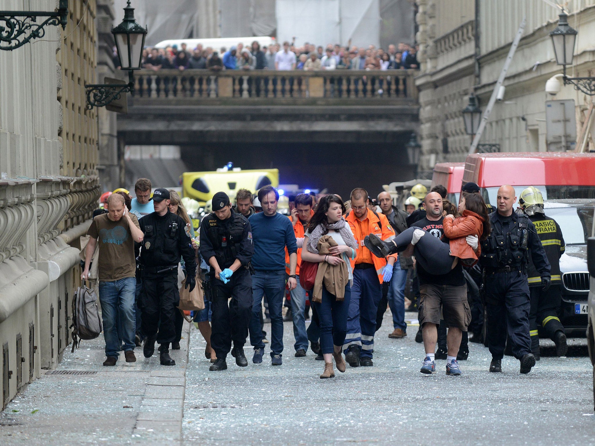 Initial agency reports suggest that some people may be trapped in debris following the explosion in Divadelni Street.