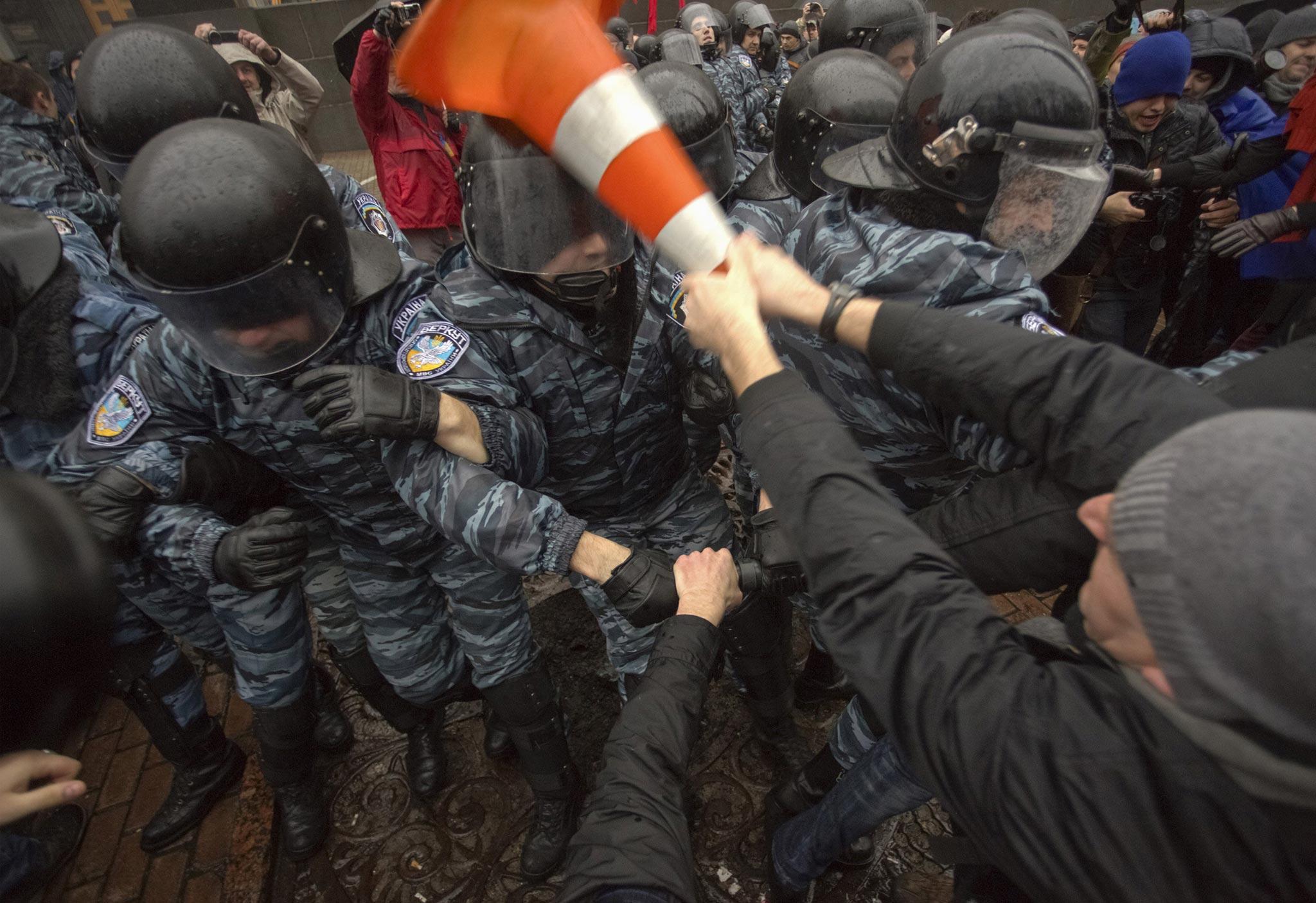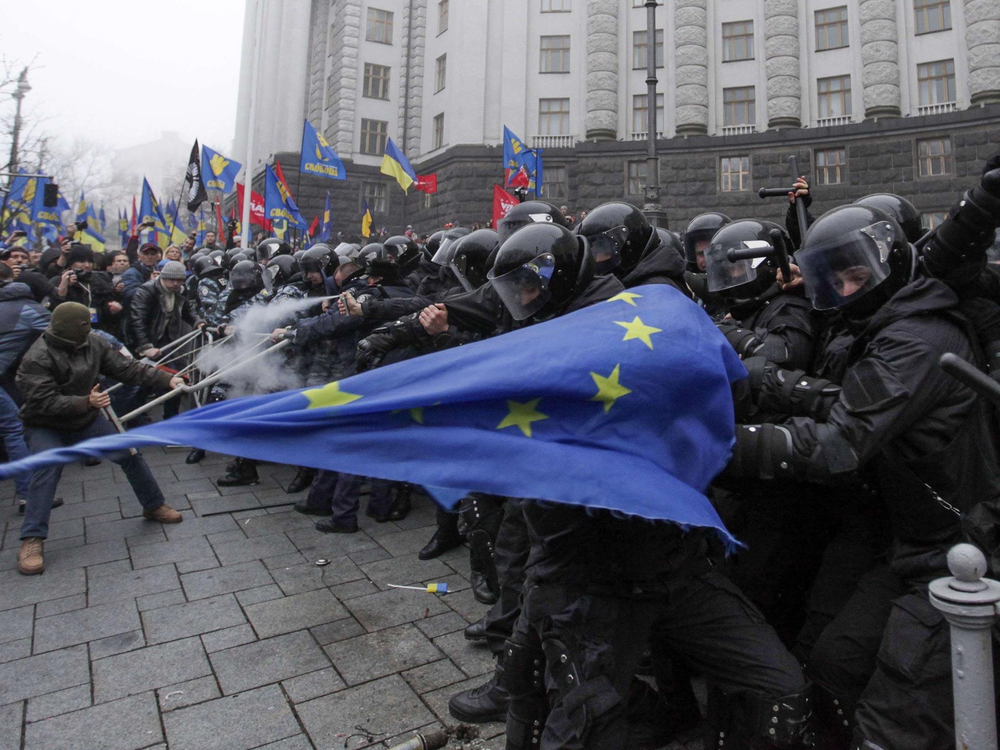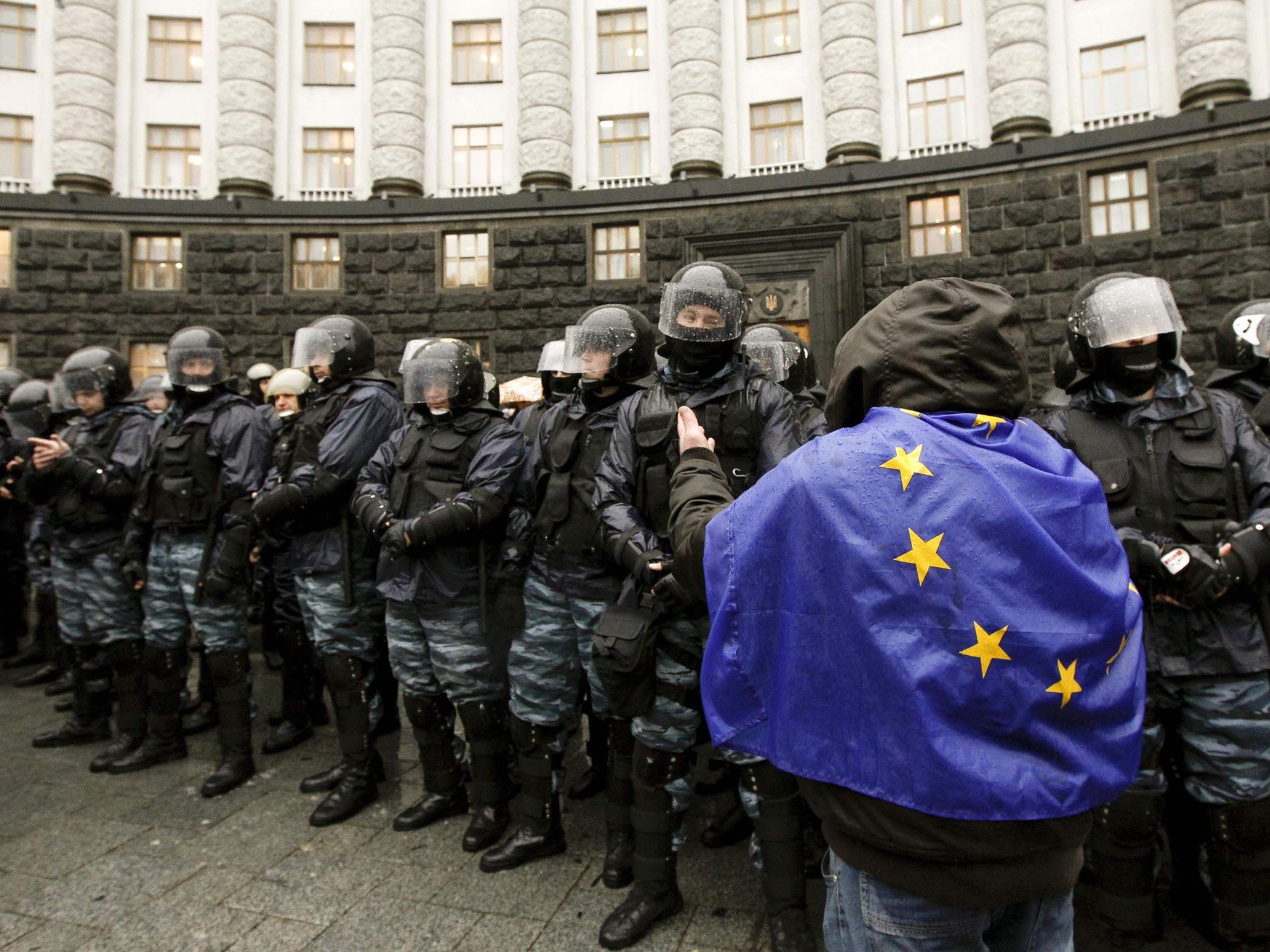 Your support makes all the difference. Read more People have taken to the streets in Kiev to protest against the government's recent move to isolate itself from the EU. Following pressure from Moscow, Ukraine backed away from a trade pact with Europe and instead move closer to its Russian counterparts.