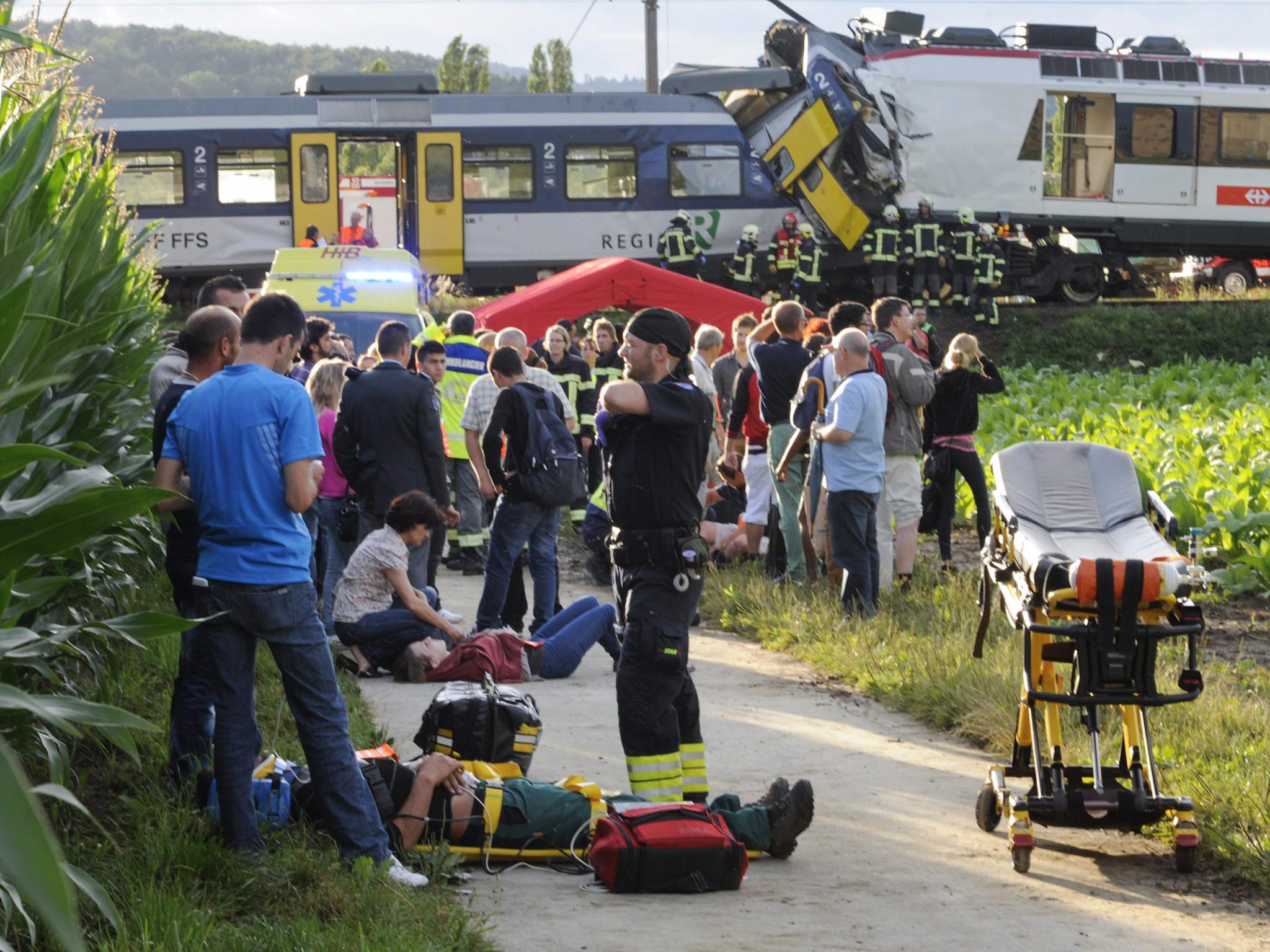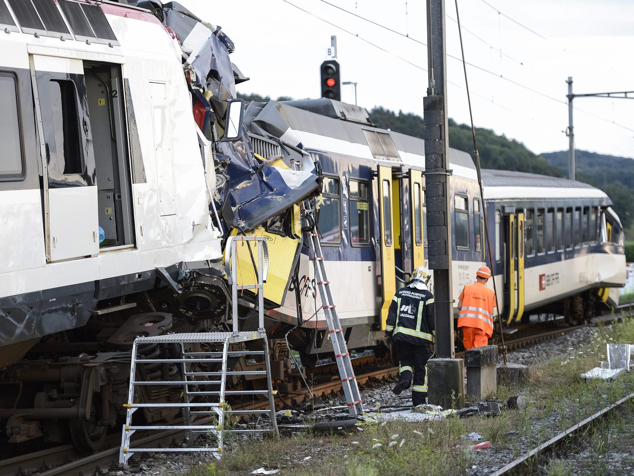 NewsWorldEuropeIn pictures: Switzerland train crash Tuesday 30 July 2013 09:49 BSTCommentsIn pictures: Switzerland train crash Show all 10The driver of a train was killed late last night in a head-on collision with another train that also saw 26 people injured.Click here to see more images from the incidentJoin our commenting forumJoin thought-provoking conversations, follow other Independent readers and see their repliesComments