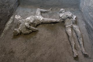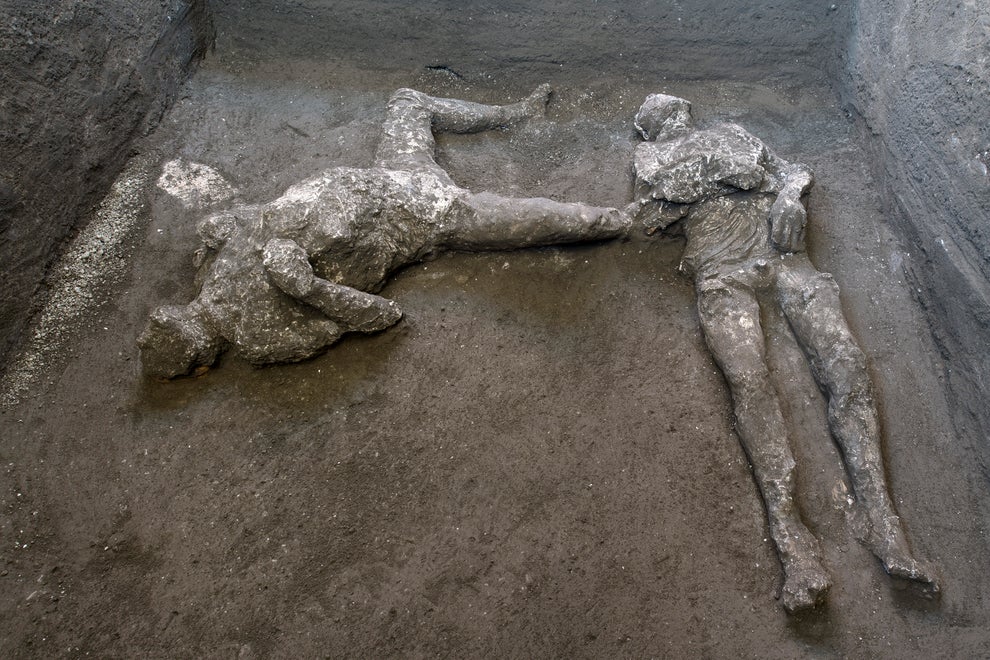 Men escaped the initial fall of ash from Mount Vesuvius then succumbed to a powerful volcanic blast next day