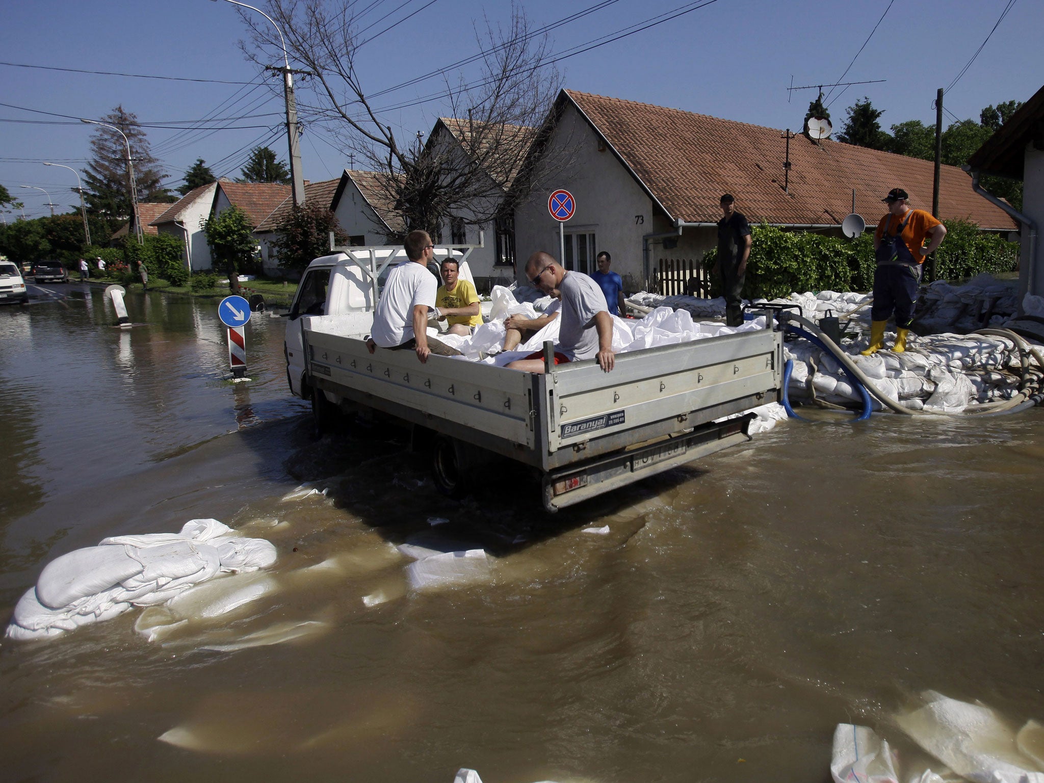 In Hungary, thousands of volunteers, rescue workers and even convicts were reinforcing dykes along a 470-mile stretch of the swollen Danube yesterday. Some 2,000 residents were evacuated from the village of Gyorujfalu in western Hungary because a dyke threatened to burst.