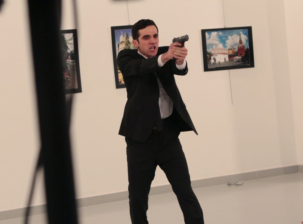 Some reports said the assailant had entered the gallery with a police ID and had opened fire on the ambassador as he made a speech.