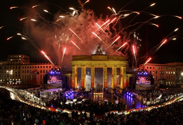 Ms Hattenhauer was one of hundreds of thousands of Berliners and visitors from across Germany and overseas who joined celebrations in the capital last night. Ms Merkel described the events as "a celebration of the happiest day in post-war German history".