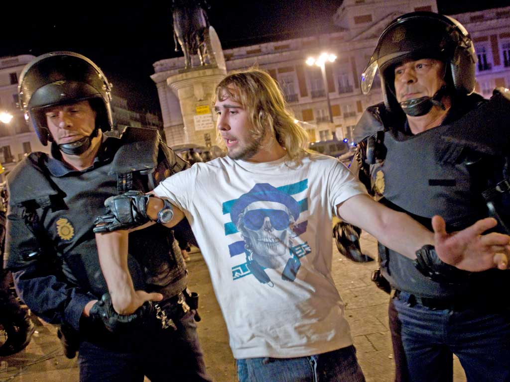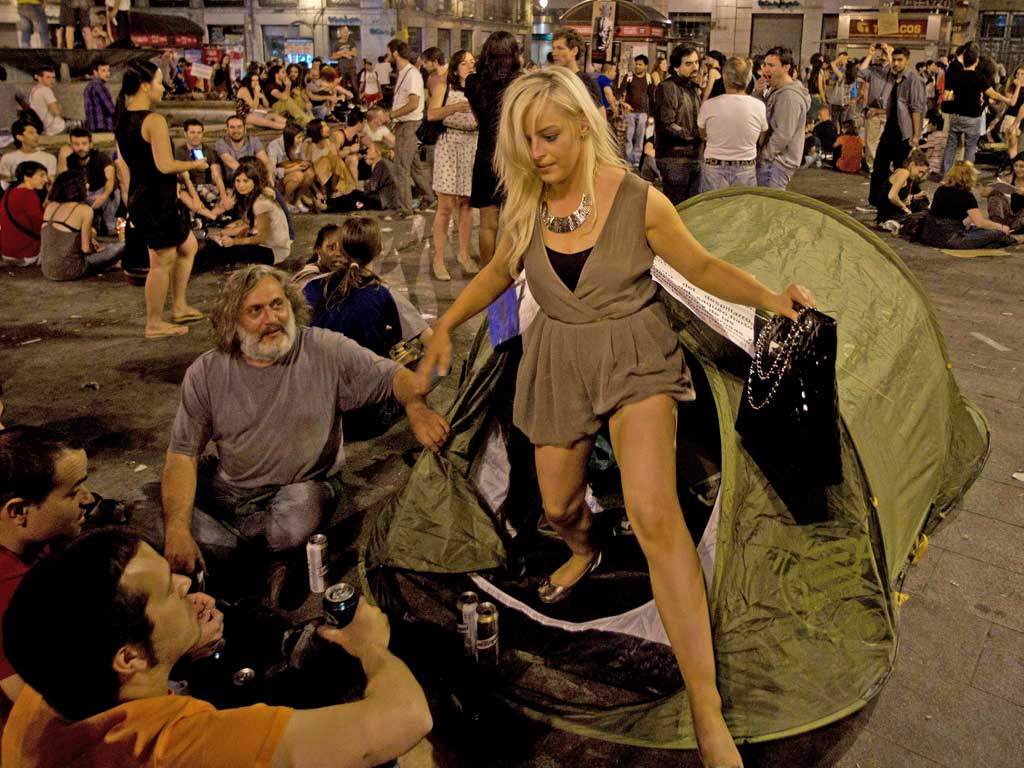 The Spanish Prime Minister Mariano Rajoy was yesterday forced to defend his government's austerity drive after thousands took to the streets in protest on Saturday. A total of 72,000 people protested across Spain, with 30,000 in Barcelona and 22,000 in Madrid, pictured, as Spaniards marked the first anniversary of the Indignant Movement [Indignados], which inspired similar anti-authority demonstrations across the world.