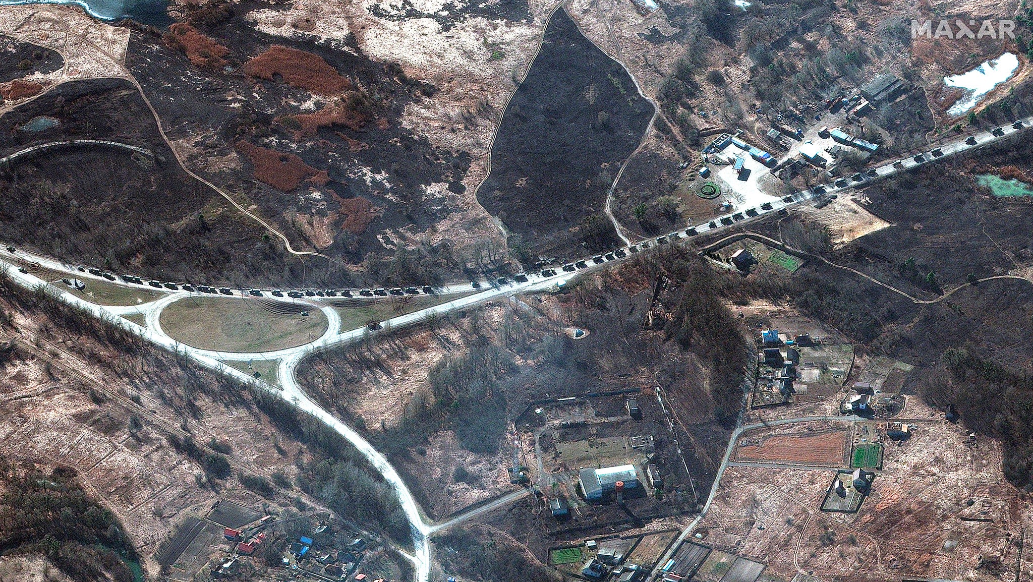 The queue of military hardware is more than 40 miles long, over twice the original estimates that it spanned 17 miles, according to satellite imaging firm Maxar Technologies.