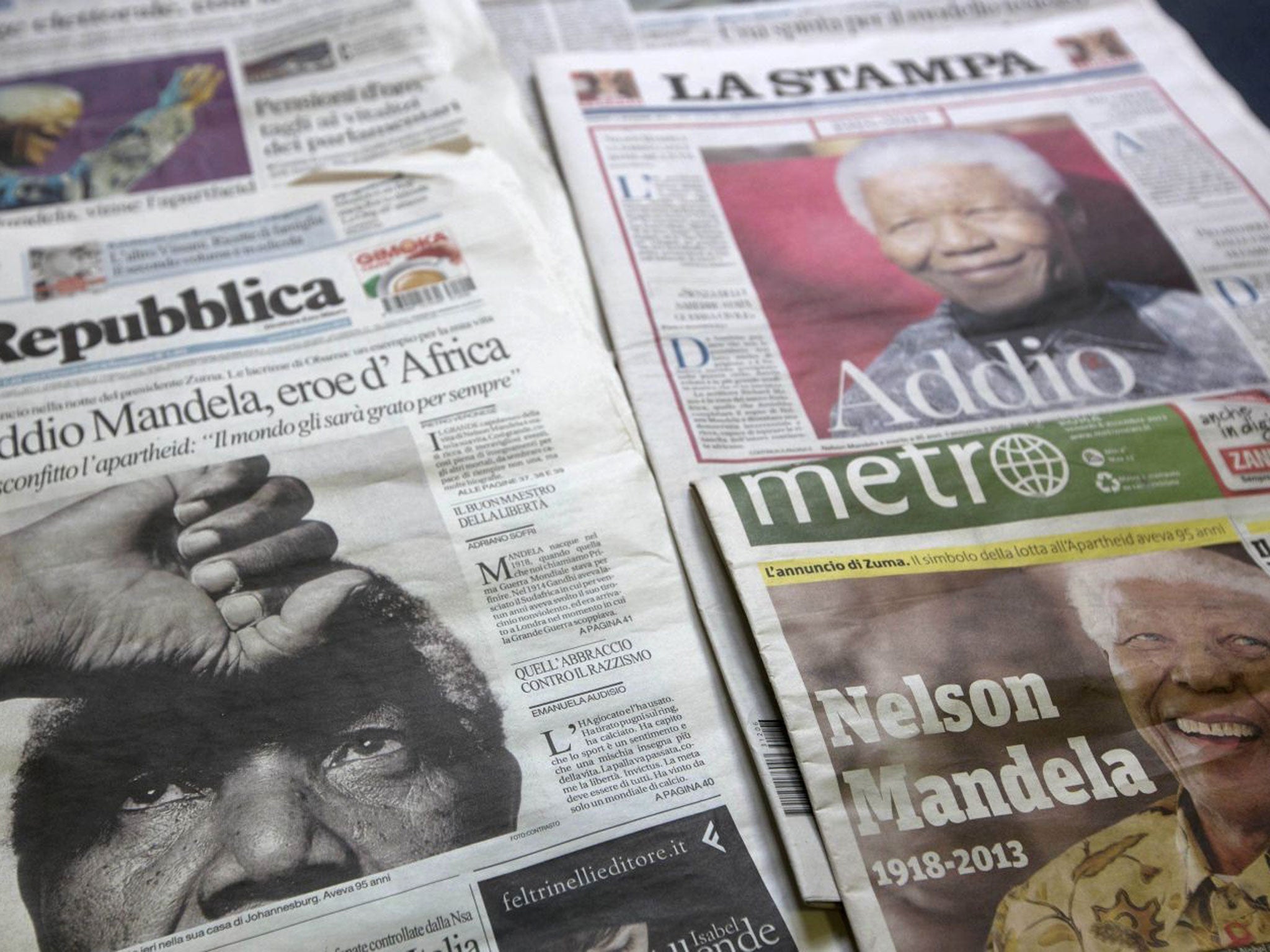 Your support makes all the difference. Read more Newspapers and television stations around the world published pictures of Nelson Mandela on their front pages and websites, accompanied by large, bold headlines.