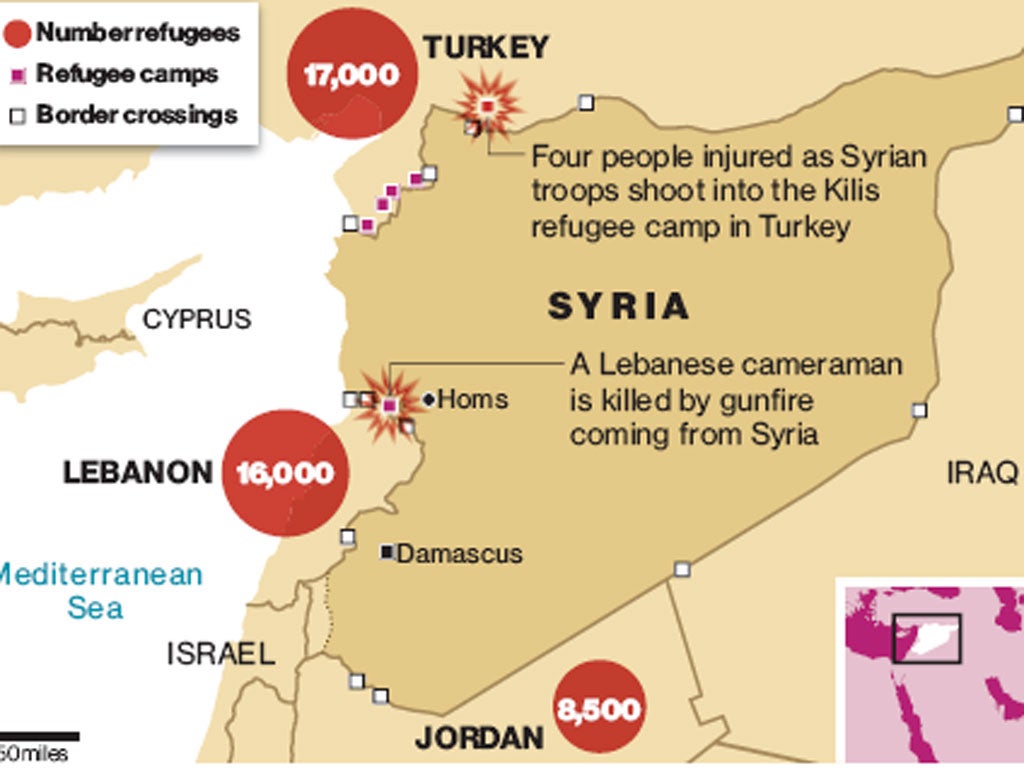 The Syrian army fired into Turkey and Lebanon during one of the bloodiest days of violence for months, in which 160 were reported dead across Syria. The unrelenting bombardments further diminished hopes for the peace plan proposed by the UN-Arab League envoy Kofi Annan, under which the Syrian government would withdraw its troops from towns by 6am this morning, and cease firing within 48 hours.