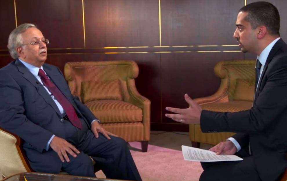 Abdallah al-Mouallimi being interviewed by Mehdi Hasan