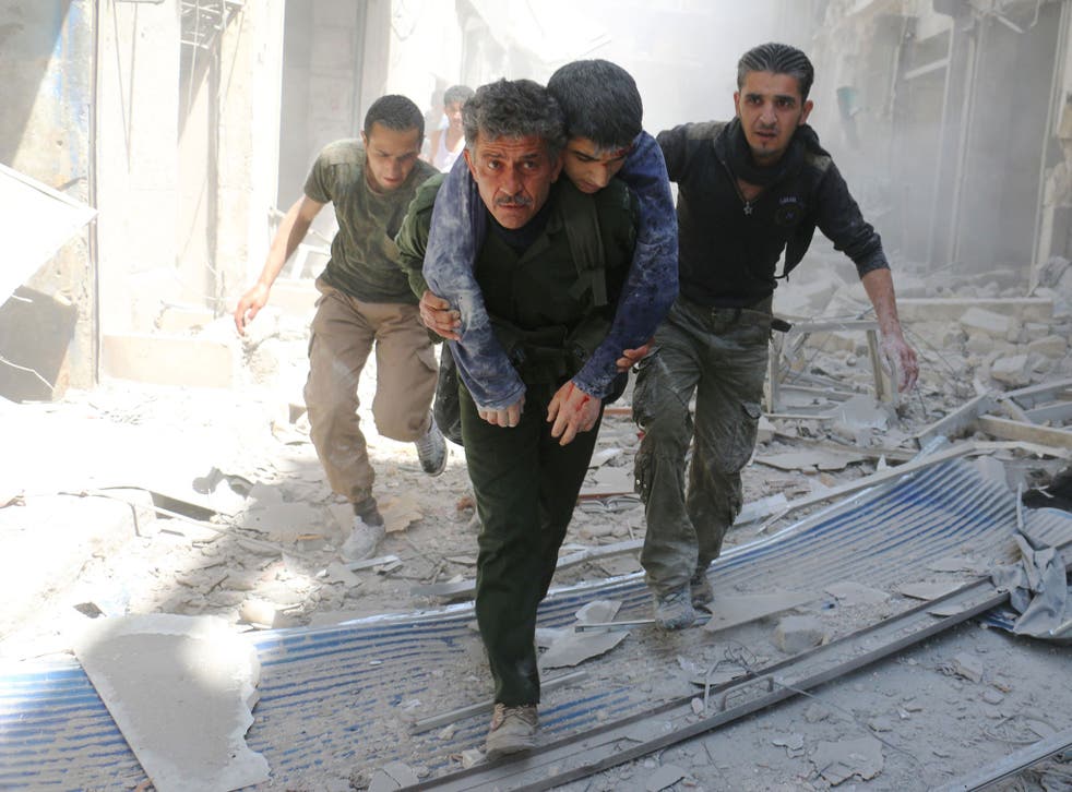 Videos posted online by opposition activists showed rescuers pulling bodies from shattered buildings in the neighbourhoods of al-Soukour, Kallasa and Bustan al-Qasr.
