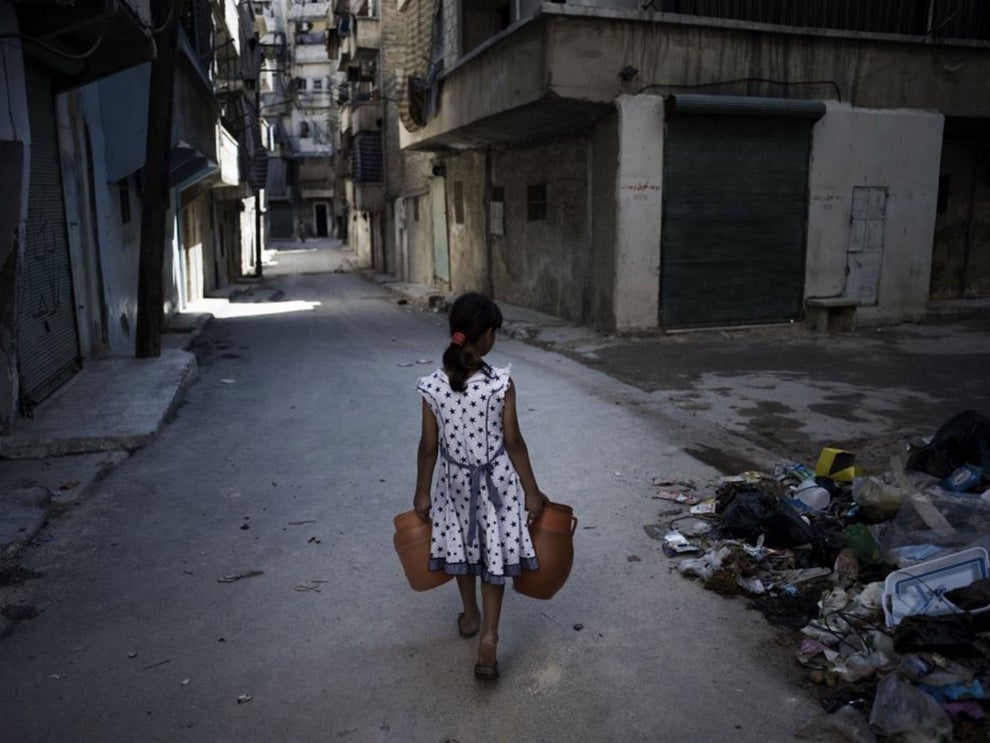 People in Aleppo are being forced to collect water from unsafe sources such as fountains and wells