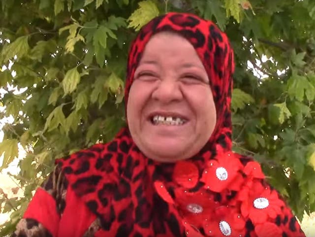 Mrs Al-Muotee, who was speaking to a female journalist from the Hawar news agency, was filmed wearing a red leopard print hijab and large red flowers, with her face and hands uncovered.