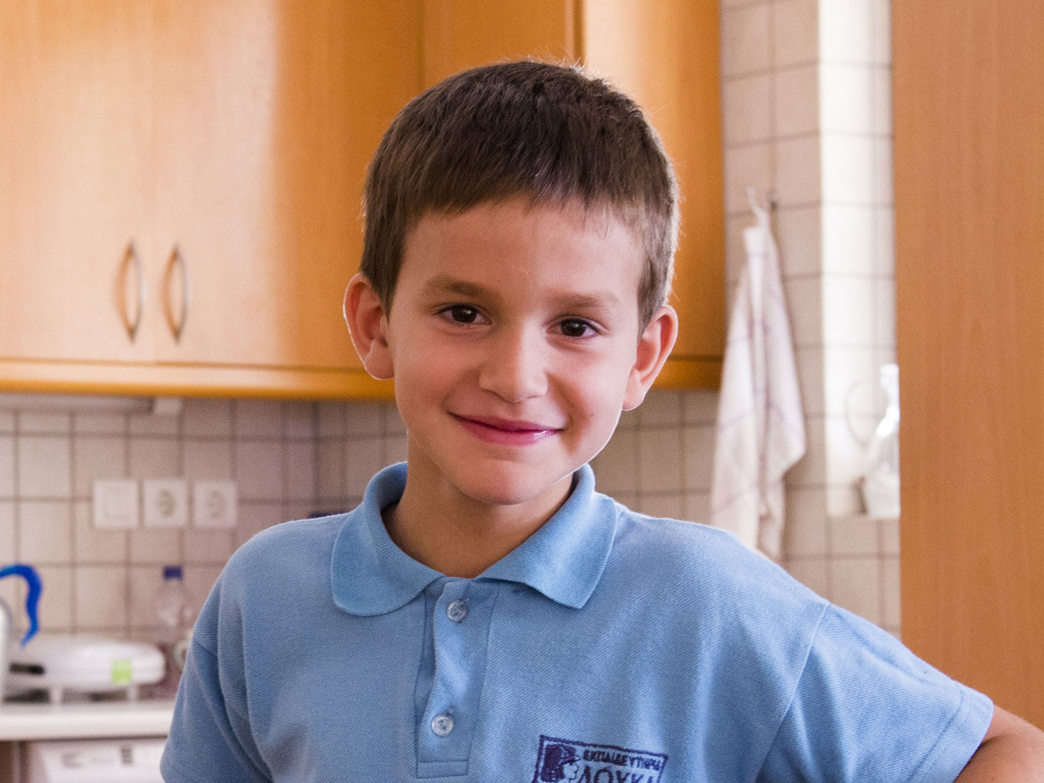 “My favourite thing about where we live is our garden because it’s big and we can play there. I like playing football and basketball. I help my mum with the chores. I set the table and sometimes, I sweep the balcony. I pick my stuff up and I help her when we go to the supermarket. We watch on telly that some people don’t have enough to eat in Greece. I would like for the world leaders to change things so that there wouldn’t be so many poor people in Greece and in the world. This would make me feel better.”