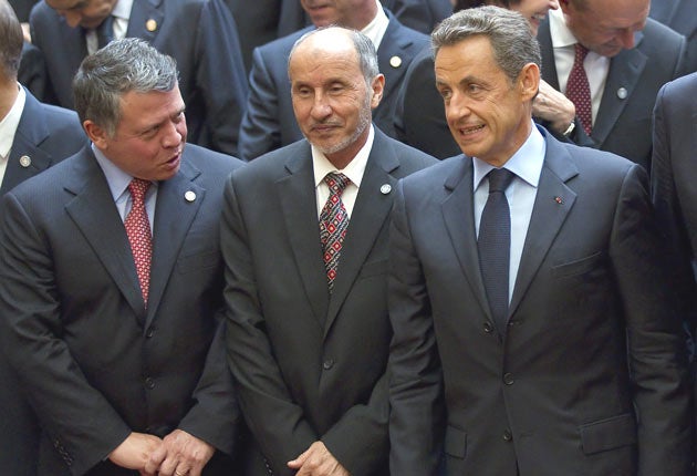 Even the protocol of last night's summit was skewed to shower honours on the Transitional National Council. Of the 60 delegations to the Elysée Palace, only one received a ceremonial trumpet and drum fanfare and a personal handshake from President Sarkozy.