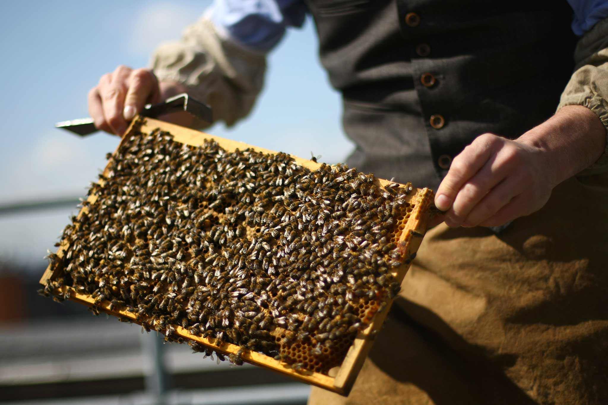 At that moment the comb fell, thud, into place. The bees flew up, jolted into alarm. They were in my hair, down my neck, up my trouser legs. I ran for the house, stripping as I went: shirt on the top lawn, trousers on the drive, the rest by the back door. By the time I dived under the shower in the bathroom, I had nothing on at all. Except a load of bee stings. And the bees, poor things, had died in the stinging. It was a well-learnt lesson that one. Next day, I went out and bought a veil.