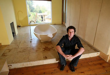 Outside, as you may have noticed, I've built a sort of high fortress around the front garden, like we've cocooned ourselves in. The reason? Well, there was a strange incident shortly after we moved in [which he declines to elucidate upon] and I didn't want that happening again, certainly not after my daughter was born [in December 2004]. I tried to do it as tastefully as possible, based largely on something I'd seen in Venice Beach, California, but I'm not sure the neighbours like it. I do, though.