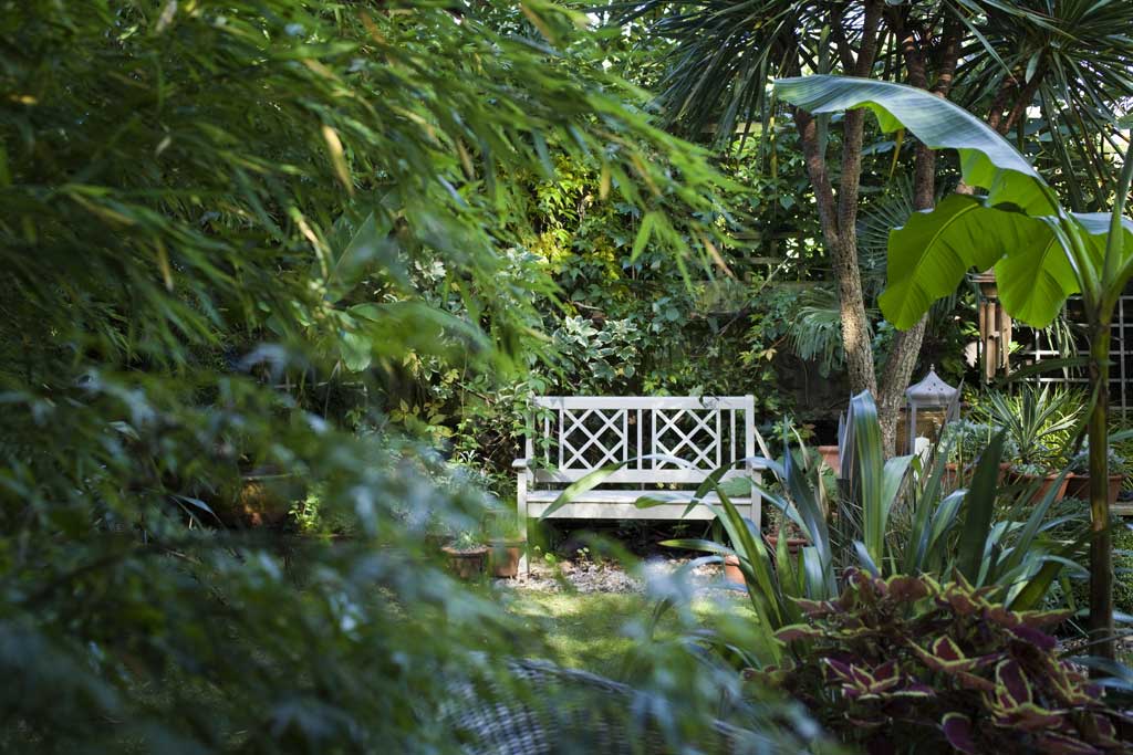 The garden faces south-west and is sheltered by a belt of mature trees along the left-hand side, so the result is a micro-climate that is several degrees warmer than even the central London average.