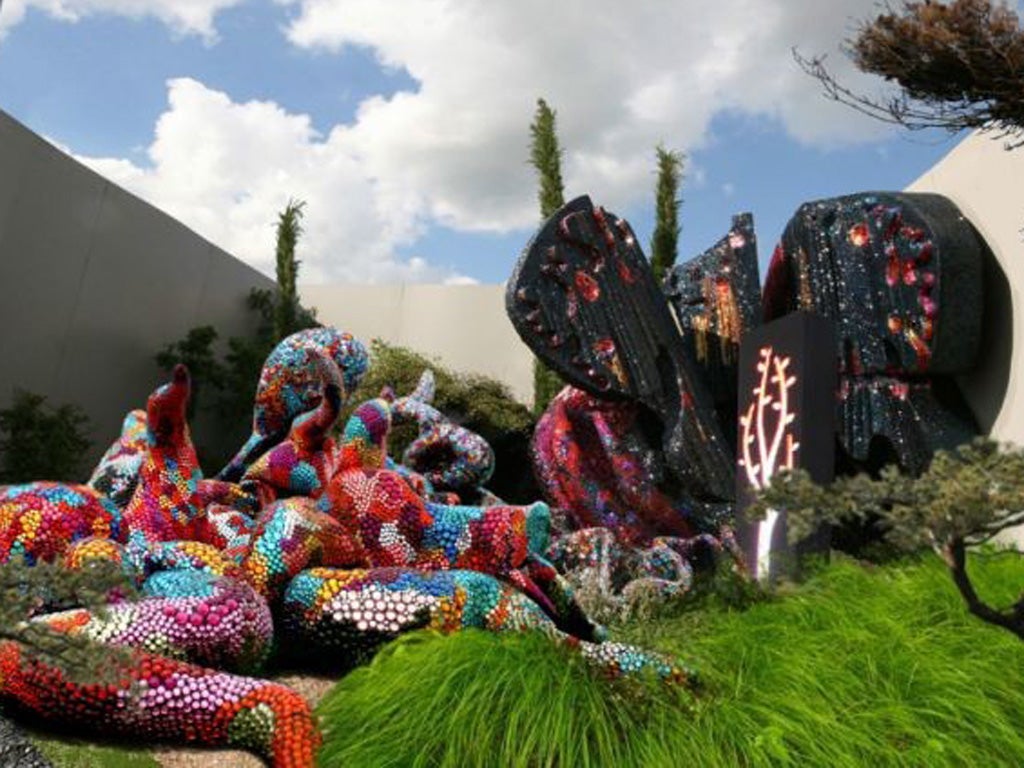 G is for Glamourlands, created by artists Tony Heywood and Alison Condie, and described as a techno-folly. It's a sort of evolving landscape-cum-installation inspired by Dorset's Jurassic coast, and it marks the introduction of a new category of show gardens, called Fresh, which replaces the Urban Gardens class. Expect some harrumphing from the panama-hat brigade.