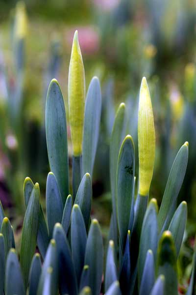 When I saw them, the tulips were in wonderful shape, the buds of emerging flowers characteristically borne at right-angles to the stem. It must have been this habit, combined with the clear butter-yellow colour of the flowers, that persuaded early botanists to call them daffodils. It's an unmistakeable flower, the three outer petals of the flowers curling back on themselves, and leaving the three inner petals to make a closed curved dome inside.