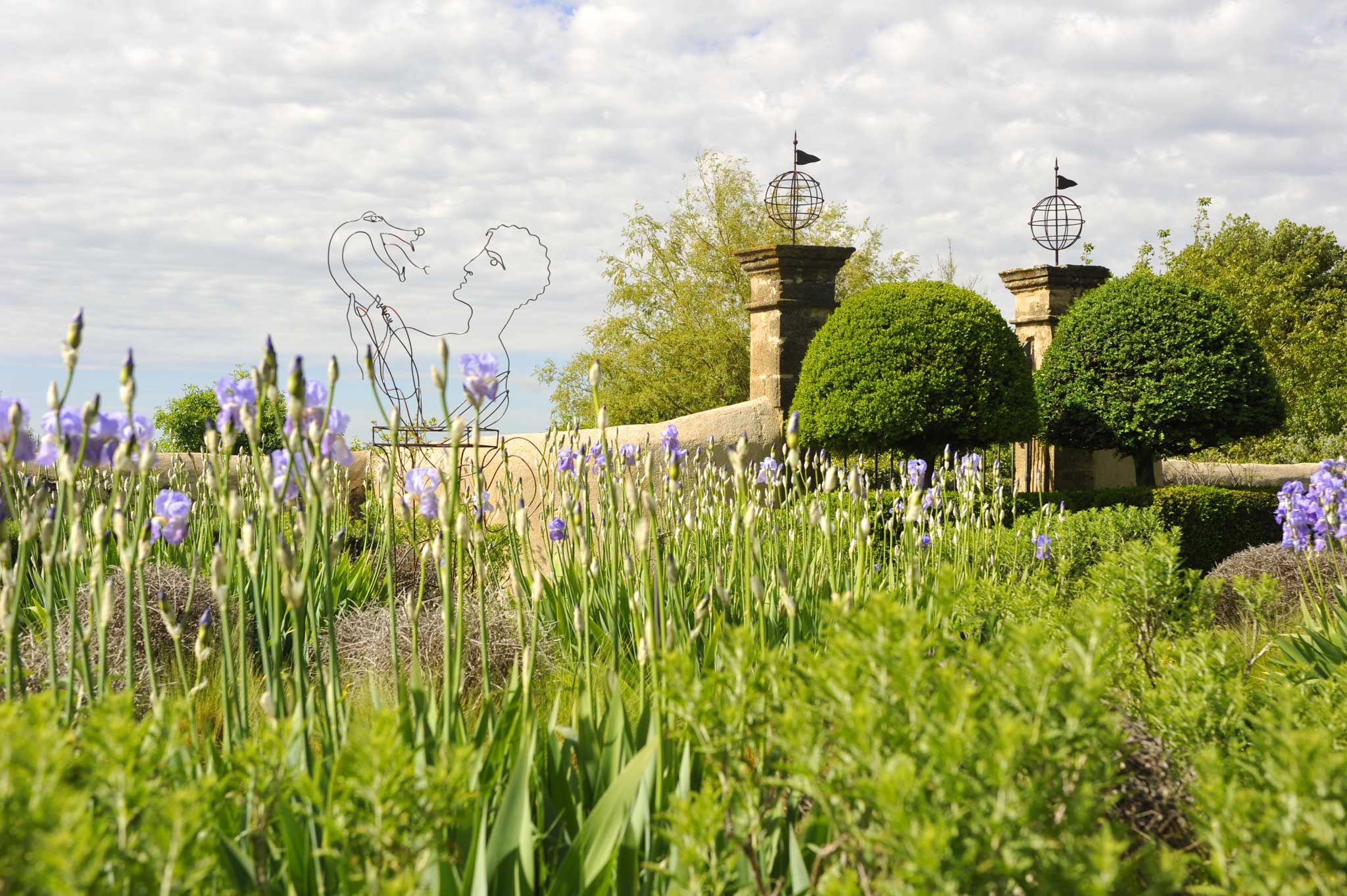 The circle closest to the house was packed with iris, the dominant plant when we were there in the middle of May. But later there would be blue-grey teucrium and shrubby Russian sage to take over the ground (though much less dramatically) and see it through the summer. The lower circle was planted with a cooler mixture of Stipa tenuissima and teucrium, a handshake with the grassy verges of the road beyond the gate.
