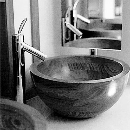 Furniture designers William Garvey (www.williamgarvey.co.uk; 01404 841 430) will make you a round wooden basin to order for £548. The matching bath will cost you £13,000. Both are made from teak and the natural oils within the wood protect it from the water and stains and allow it to be cleaned with household detergents. Teak is also naturally insulating which means the water stays hot for ages.