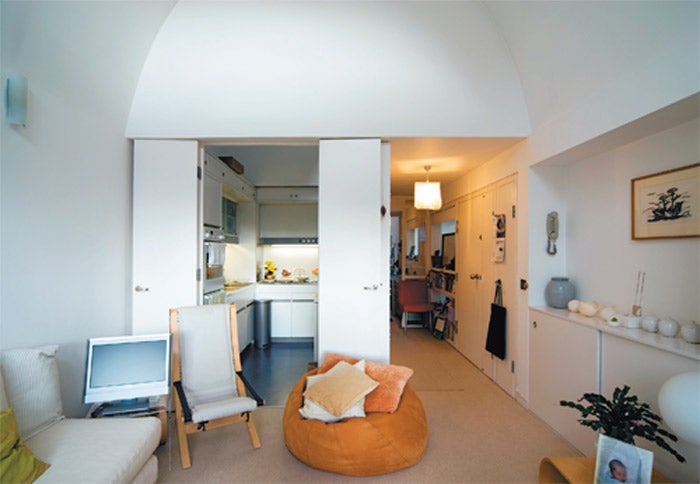 She has done a complete U-turn on style since moving here, responding to the design and layout of the flat, built in 1973. Gone is much of her antique furniture, the Queen Anne desk and the old velvet chairs. Now furniture from The Conran Shop and Robin Day's classic leather sofa for Habitat sit comfortably alongside clear plastic dining chairs and a retro lamp. One of the unique features of a penthouse in the Barbican is the double-height curved ceiling which runs along the length of the flat. It transforms what would be quite a narrow living space into something much brighter. In the living room, which has the original fitted kitchen off to the side, is a giant floor-to-ceiling window, beautifully arched. It looks out on to a terrace with a view of St Paul's Cathedral.