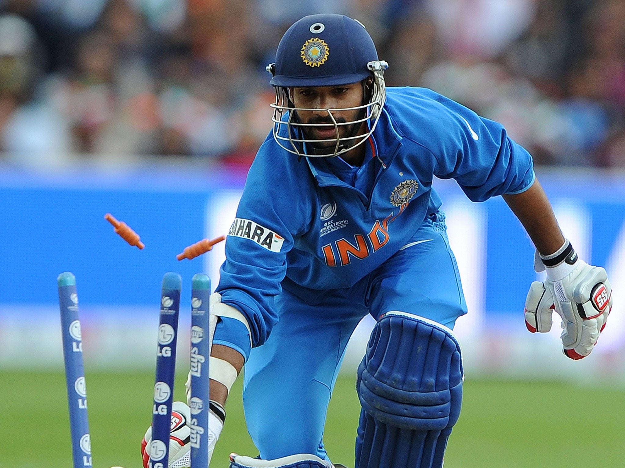 All that remained was for Shikar Dhawan to exude star quality as India chased down a target which was reduced from 168 to 157 and, finally, 102 in 22 overs. The left-handed opener, with his waxed moustache and raffish, raised collar, represents the new generation. He cemented his status as the tournament’s lead scorer, making 48 from 41 before perishing in the deep.