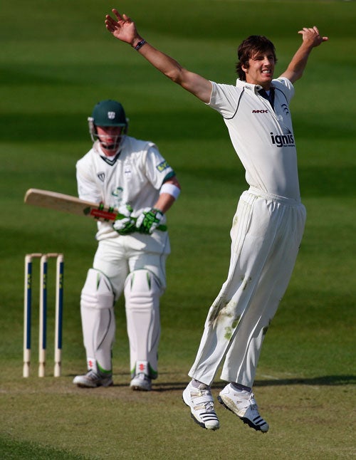 Elsewhere in the First Division, Yorkshire eked out a first-innings lead of 57 against Warwickshire at Edgbaston thanks to the tenacity of Adil Rashid (44) down the order. The home side knocked off the deficit to close on 84 for 1 with Ian Bell on 41 not out.