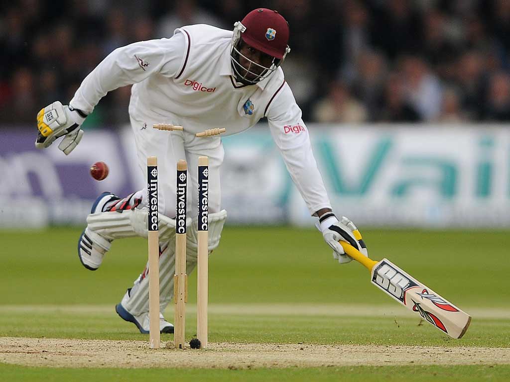 Before the breakthrough, however, they had to deal with Jonny Bairstow. Making his debut, he was batting at No 6, in place of the injured Ravi Bopara. who was all promise as he scored 143 when West Indies were last at Lord's in 2009. Bairstow is capable of turning Bopara into yesterday's man. He is a 22-year-old with a family name to live up to – his father, David, played with distinction for Yorkshire and four times for England.