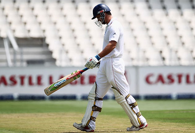 Kevin Pietersen then mis-pulled Morkel, presenting an easy catch to mid-on, and Alastair Cook was given out lbw by umpire Tony Hill - and third official Daryl Harper, after a DRS appeal.