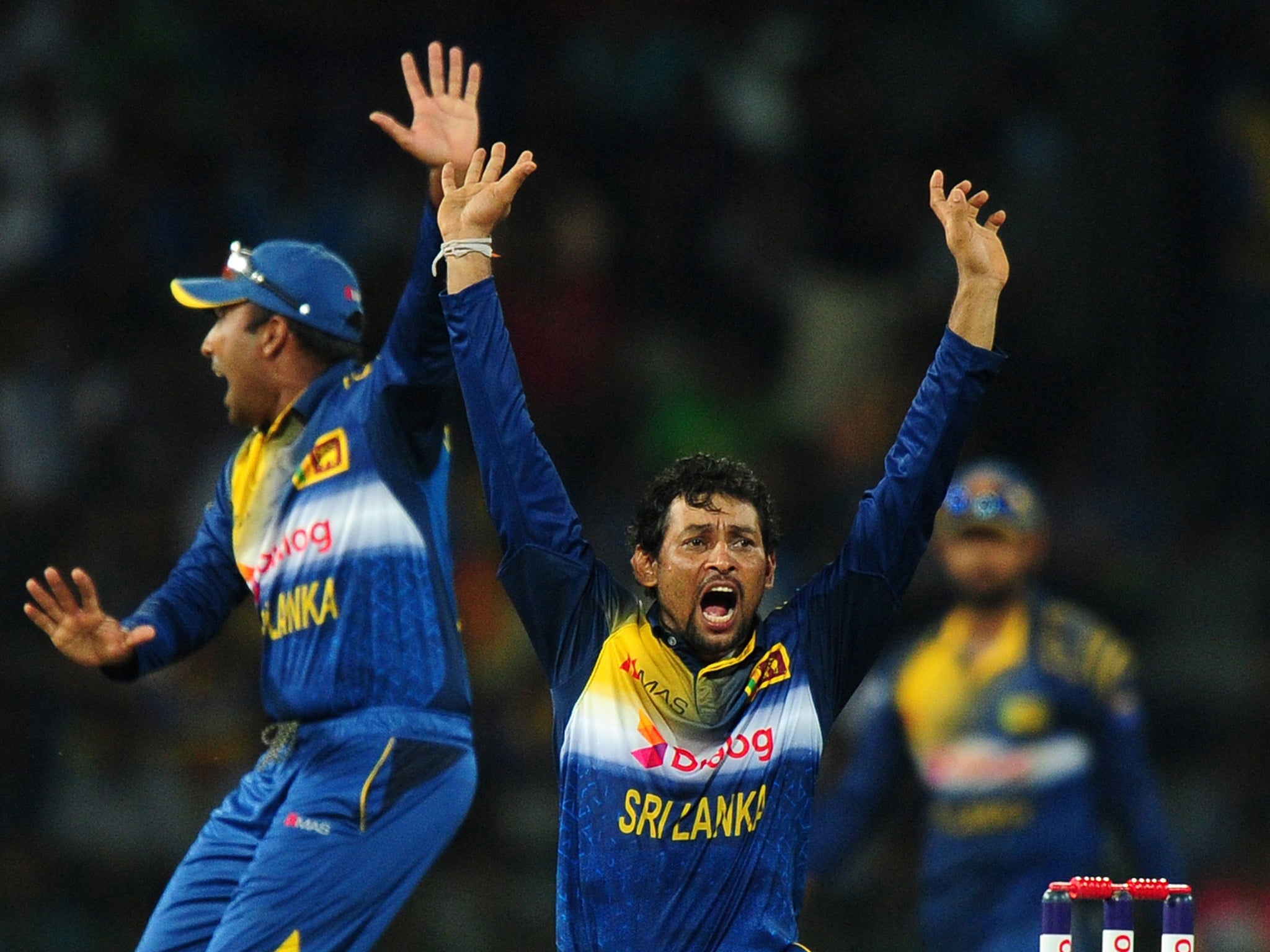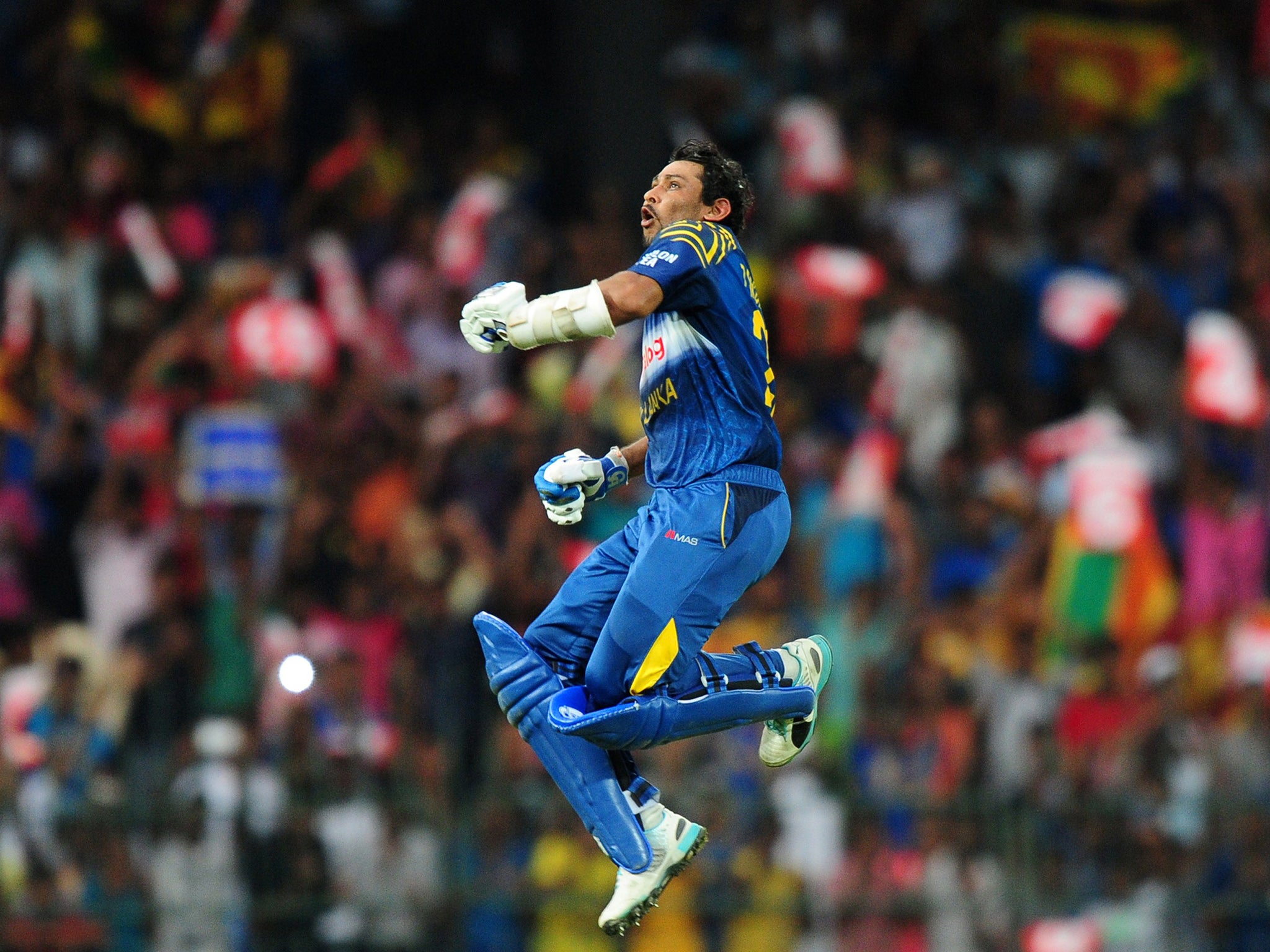 The match finished with Sangakkara stumping James Tredwell off Jayawardene’s gentle spin, the old warriors combining for the last time on home soil.