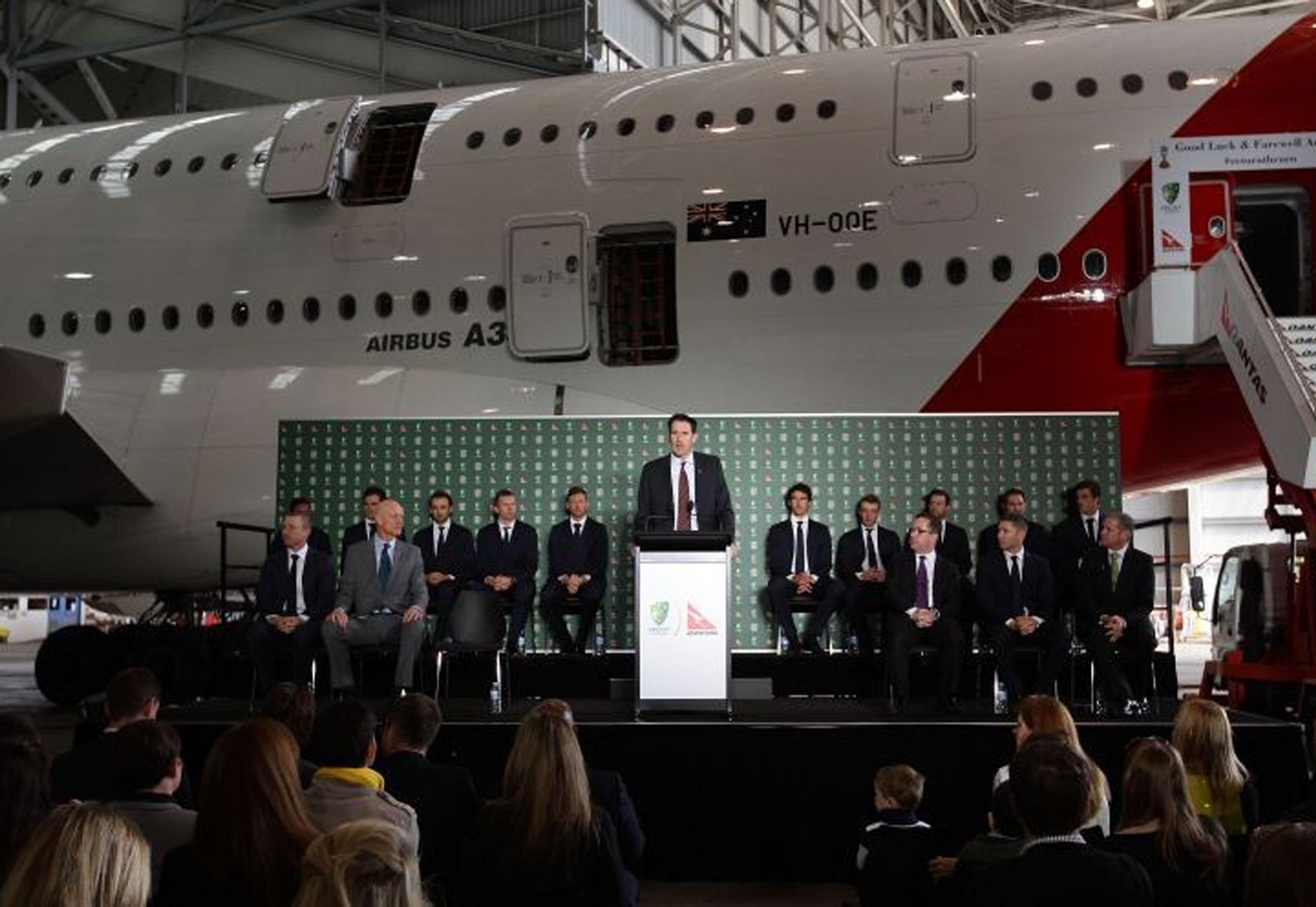 Captain Michael Clarke and vice-captain Brad Haddin posed for pictures in the cockpit ahead of the eagerly awaited series.