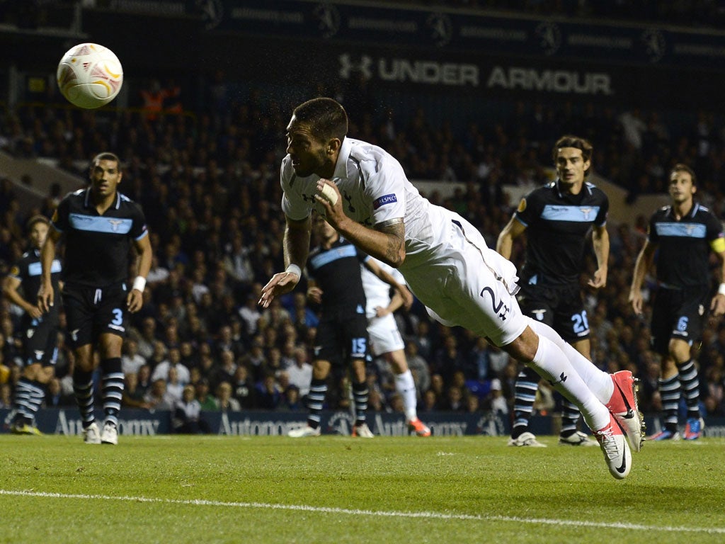 Lazio only had one real chance, when Alvaro Gonzalez volleyed against the bar just before the break, and the second half was all Tottenham. Defoe slid in Lennon, whose shot was hooked off the line by Luis Candava. Lennon ran at Gonzalez, who committed two bookable tackles on the winger but was only booked for the second of them.