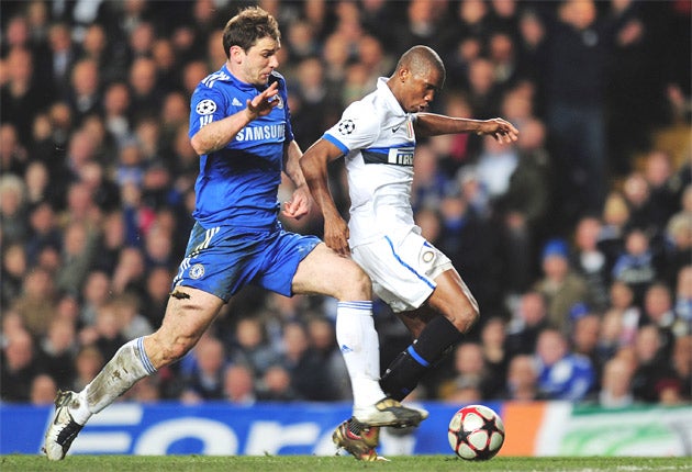 Drogba is the recently crowned African footballer of the year but Eto'o upstaged him, taking his one major chance of the game in the 78th minute. He ran on to Sneijder's pass, holding off Branislav Ivanovic and beating the rookie goalkeeper Ross Turnbull at his right post. You could hardly say that it was Inter's only chance of the match.