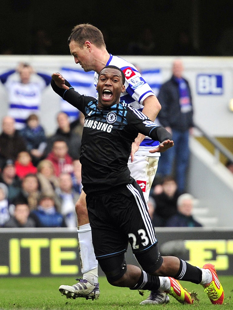 The spot-kick, converted by Juan Mata on the hour, was given after Daniel Sturridge fell dramatically to the floor after Clint Hill made mild contact with his back. QPR, who beat Chelsea here in thrilling circumstances in October, never looked like levelling and can now return to their relegation battle. For Chelsea, the next items on the agenda are a Premier League match at Swansea on Tuesday, and an appearance at west London magistrates' court for Terry on Wednesday, where he will be formally charged.