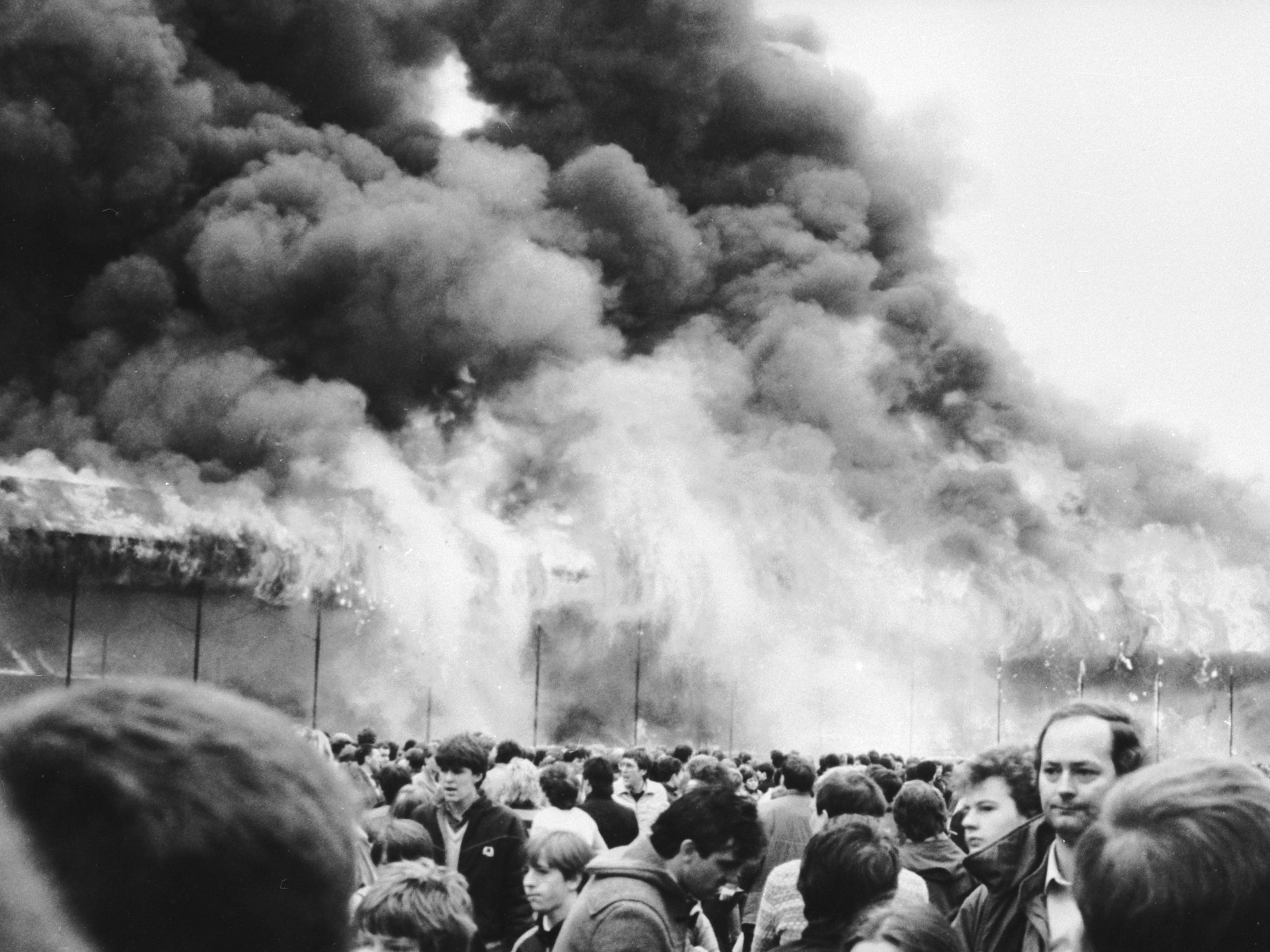 It was a family day out, you see – a spring afternoon when Bradford, with the Third Division championship secured the previous Bank Holiday, were laying on marching bands and presentations. So sons took their elderly fathers, perhaps the mothers too, and the children, for a treat. A dozen of school age perished, a father and his twins, a father and his two children, and elderly men like Norman Hall – listed on the memorial stone beneath the Greenwoods – whose age and size, perhaps 15st, made it impossible for his son, David, to navigate him down the stand, over a concrete wall and onto the pitch, to safety.