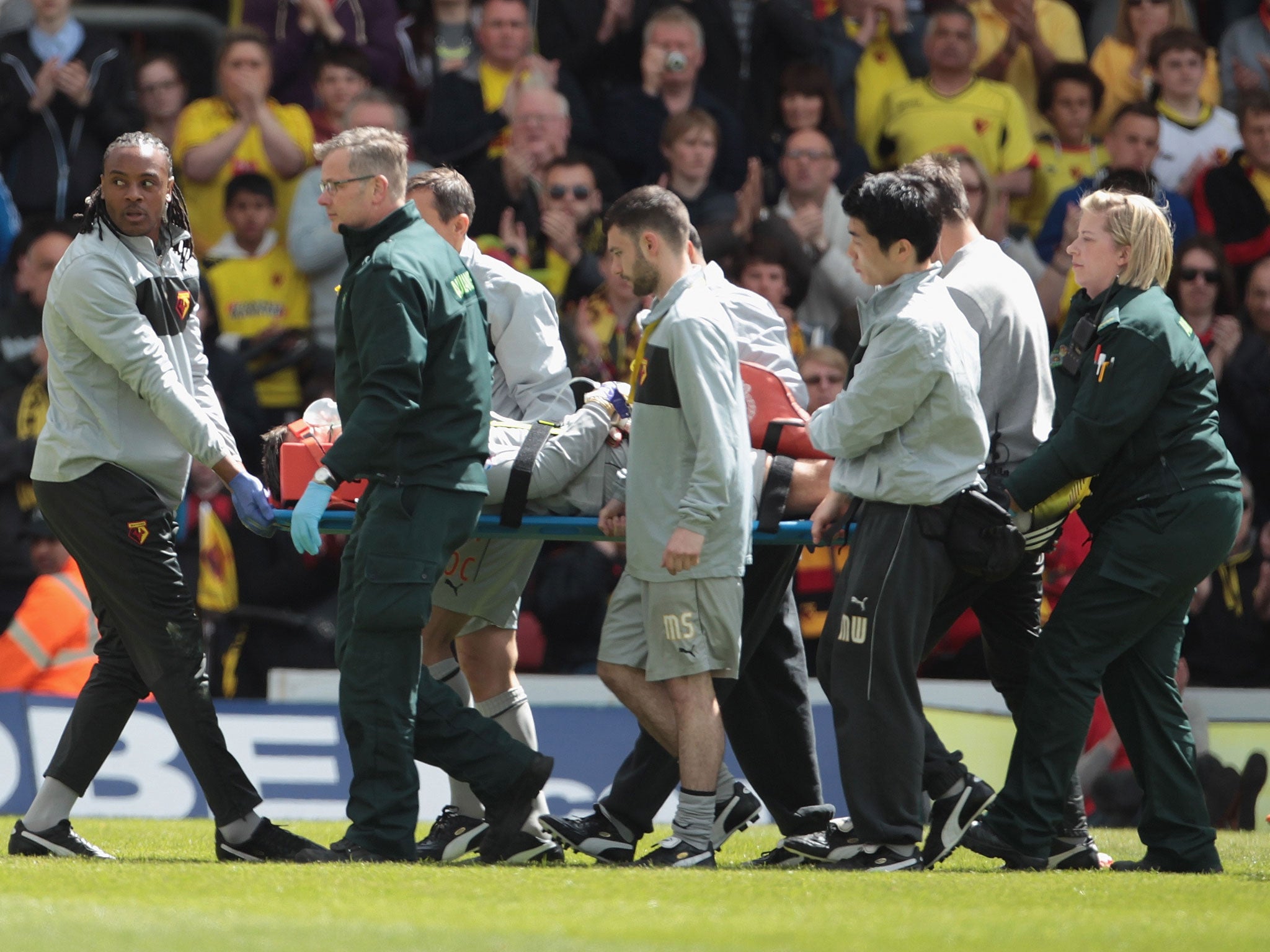 Watford's third-choice keeper, dragooned into his debut, was culpable for both of the goals which condemned them to defeat, and a Championship play-off semi-final against Leicester. They will be without striker Troy Deeney, sent off for a scything foul on that enduring irritant Michael Brown, for the first leg at the KP Stadium on Thursday.