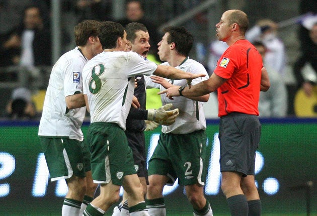 Dunne said that the Swedish referee Martin Hansson also missed the fact that Henry was offside in the build-up to the goal. Until the France goal went in, Ireland, who lost the first leg 1-0 at Croke Park last week, were back in the tie. Robbie Keane had scored to give them a 1-0 lead on the night and take it into extra time at 1-1.