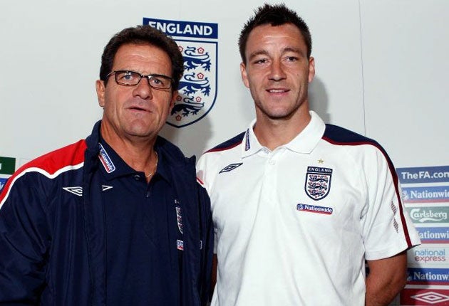 Terry has had problems with a groin injury and was pulled out of a training session yesterday. However, that was a precautionary measure because Capello wanted to put his players through a tough session and did not want to risk aggravating any existing niggles with his captain. Terry has told Capello he is ready to play and he expects to train today in front of the television cameras.