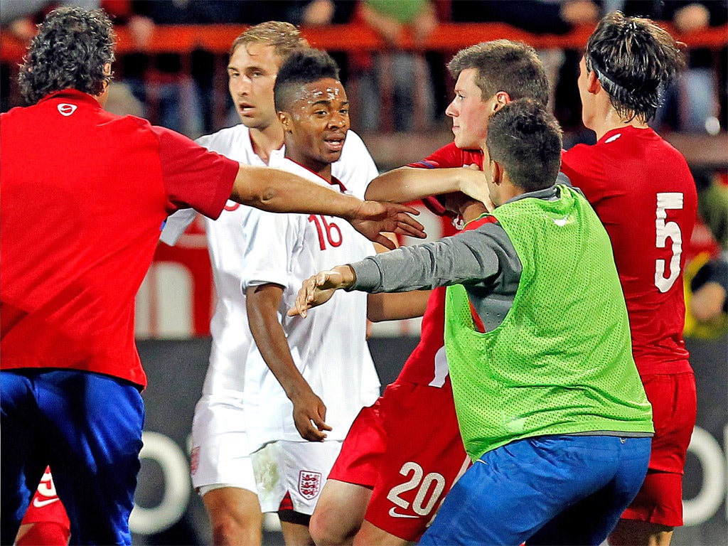 Although the final scenes were ugly, Pearce was proud of how his young team conducted themselves under provocation from the hosts. "It's very sad," Pearce said. "But we're united as a team and as a staff at Under-21 level. A lot's happening in our country regarding stamping out racism. We're proud of the reaction of our players towards the end. It's a real shame, over two ties it was a real close game between two good teams."