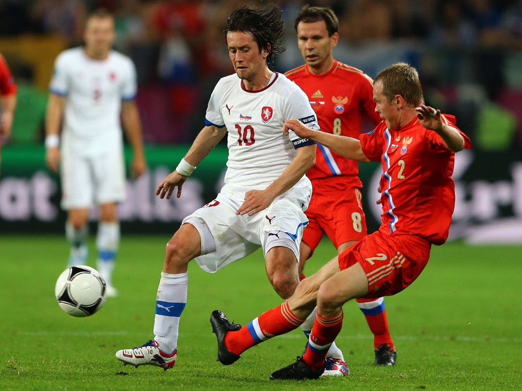 SportFootballNewsRussia v Czech Republic player ratingsMan-for-man marking from the Euro 2012 match at the Municipal Stadium in WroclawBookmarkCommentsGo to commentsBookmark popoverRemoved from bookmarksClose popoverRussia v Czech Republic player ratingsShow all 24Following the match between Russia and the Czech Republic we take a look at how the individual players performed.Click HERE or 'view gallery' to see the ratings.More aboutAndrei ArshavinArsenalCzech RepublicPremier LeagueRoman PavlyuchenkoRussiaStephen CarterTomas RosickyJoin our commenting forumJoin thought-provoking conversations, follow other Independent readers and see their repliesComments